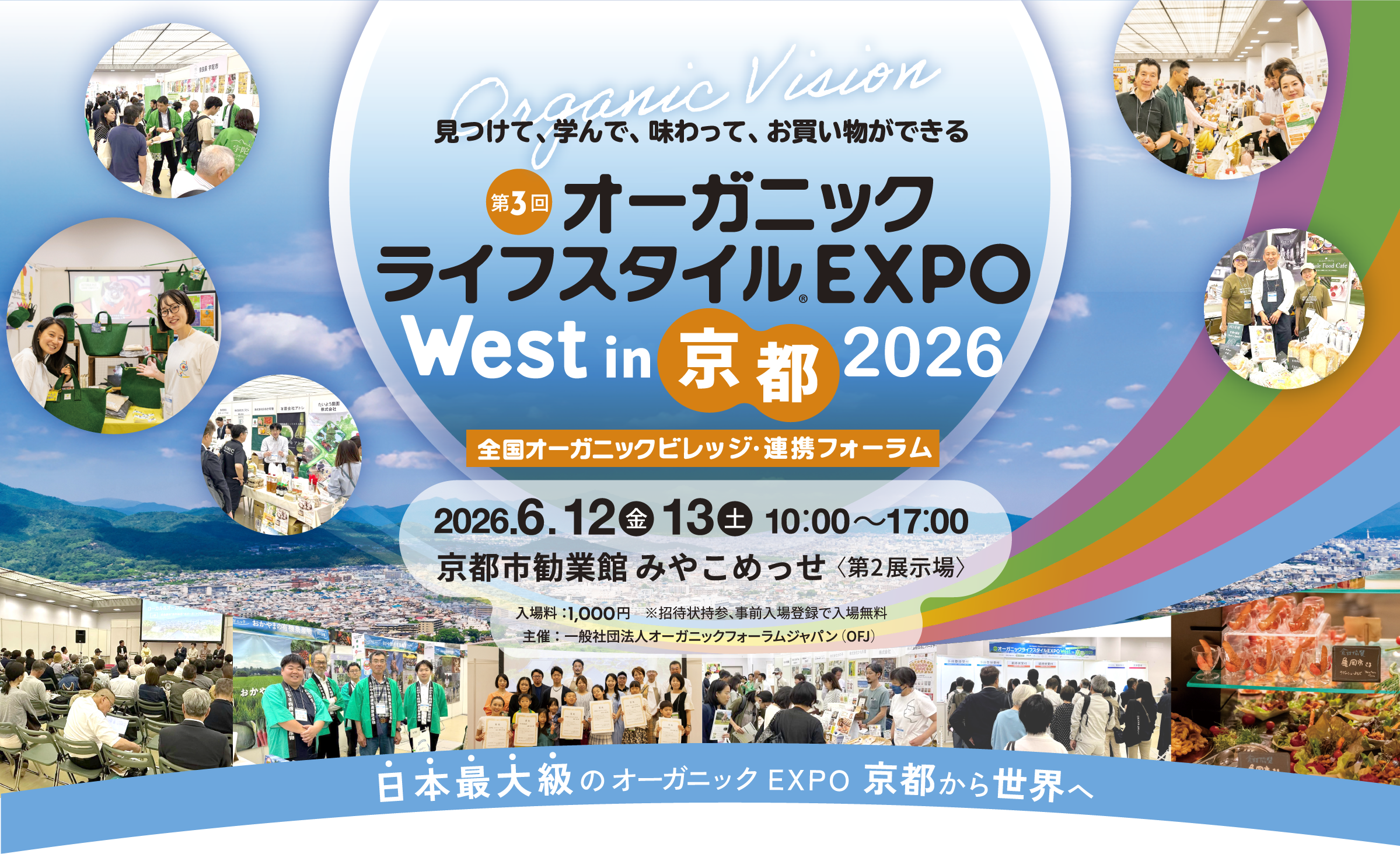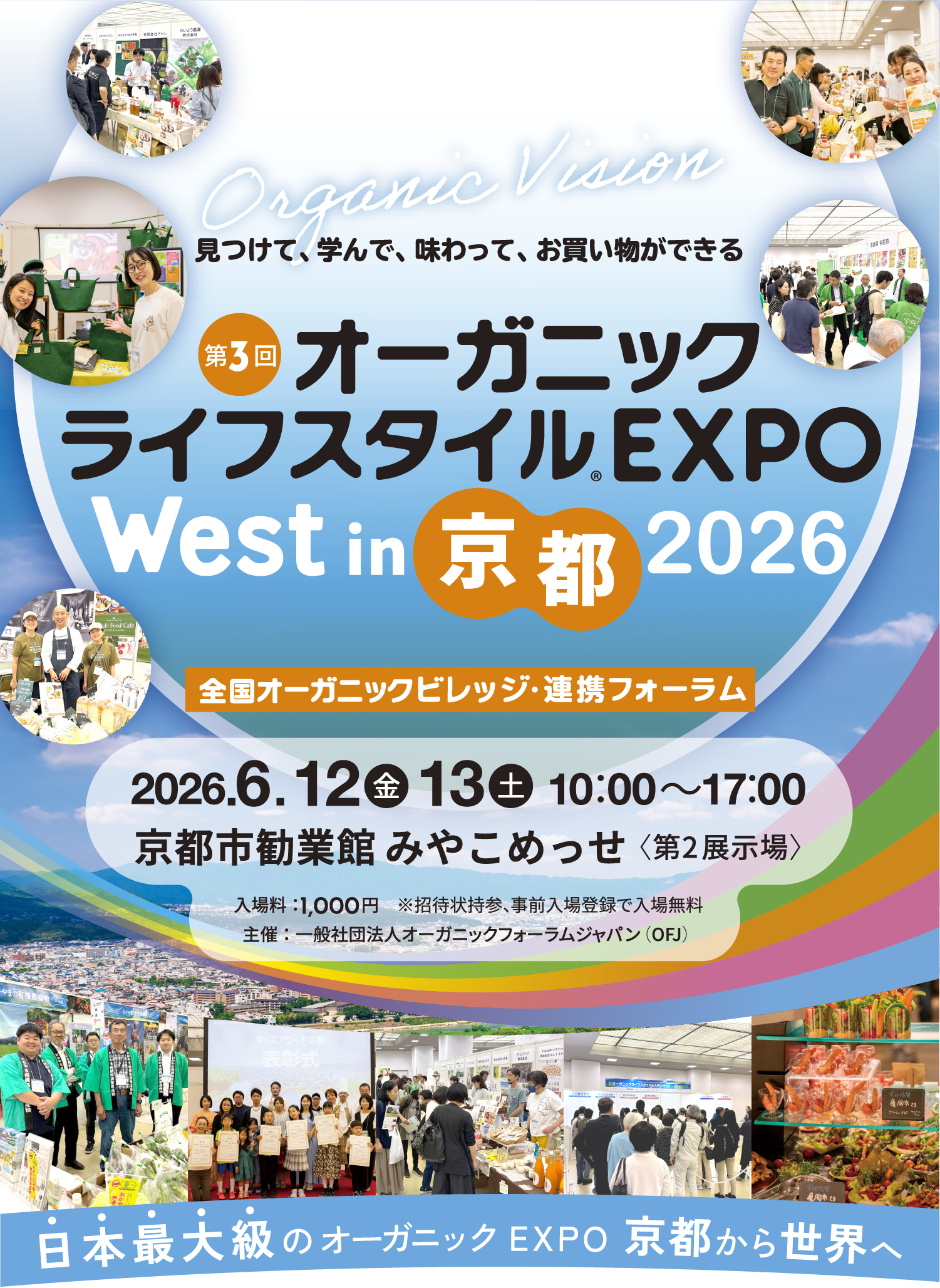 関西方面での第3回目開催として2026年6月に京都での開催が整いましたのでご案内申し上げます。会場は昨年同様の京都市勧業館みやこめっせ第2展示場全ホールを使用しての会場構成となります。多種多様な基調講演や専門セミナーや地域のオーガニックビジネスや街づくりの推進に向けた「第3回オーガニックビレッジ連携会議WEST」も併せて開催を計画しております。業界全体が一堂に介し「国内のオーガニックライフスタイルビジネスの推進、持続可能な開発目標の実現に向けて」を目標に「ローカル&オーガニック、オーガニックは地域づくり」をテーマに皆様のお役に立つオーガニックライフスタイルビジネスコンベンションの構築を目指したいと考えます。この機会に皆様のご協賛ご出展ご参加を心よりお待ち申し上げます。オーガニックライフスタイルEXPOをきっかけに、皆様が益々のご発展・ご飛躍されますことを心よりお祈り申し上げます。
